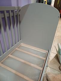 La spalliera può essere rimossa,per creare l'apertura frontale; la rete può essere regolata in altezza,passando appunto da culla a lettino.