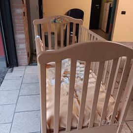lettino neonato rovere completo di Materasso, paracolpi, lenzuola e trapuntino