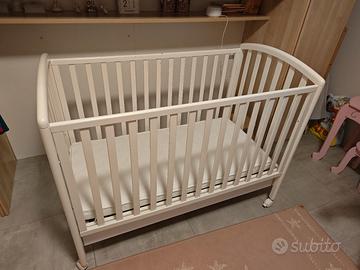 Vendo lettino con sponde in legno bianco della Chicco, completo di cassetto contenitore,paracolpi e materassino con coprimaterasso sfoderabile e lavabile. compreso anche copriletto chicco 100% cotone. tutto CHICCO.