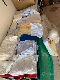 Lettino neonato Ikea Stuva bianco cm 126x66x86 con cassettini. Corredo completissimo con 2 materassi, paracolpi in gommapiuma, cuscini, diverse lenzuola, piumino, sacco nanna e sponda laterale amovibile per applicazione bordo letto. Possibilità ritiro/consegna Trieste/Monfalcone