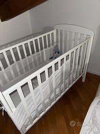 Vendo lettino per neonato/bambino in legno bianco marca Erbesi, completo di materasso. Una delle due sponde laterali è abbassabile per facilitare la presa del bimbo. Il lettino è in perfette condizioni, NUOVO, MAI USATO, in quanto acquistato 2 anni fa e mai utilizzato. Anche il materasso (antisoffocamento) è nuovo, chiuso in perfette condizioni. Complto di ruote. Prezzo 90€ non trattabili. Per info CONTATTATEMI