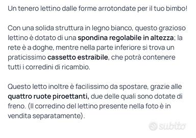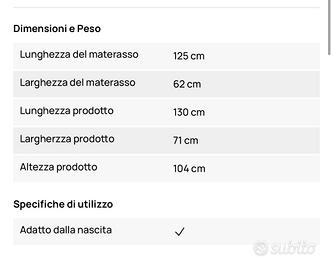 Lettino in legno bianco con spondina regolabile, rete a doghe, cassetto estraibile e 4 ruote piroettanti (2 con freno)
