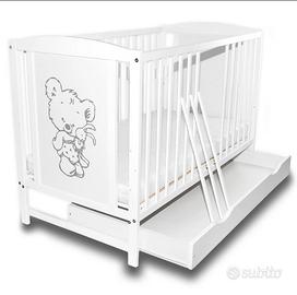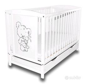 Lettino per neonati colore bianco con disegno del orso , lettino di legno già smontato , senza materasso . le sbarre si possono smontare per fare passare il bambino , si può togliere la parte davanti per quando cresce in modo che lui possa salire e scendere da solo , l' altezza del materasso si può regolare in 3 diverse altezze . Le misure sono già presenti nella foto 120 x 60 . usato un anno circa ritiro nella zona di cremona oppure spedisco con costi a vostro carico . la spesa di spedizione e indicativa il costo si aggiorna in base alla distanza.