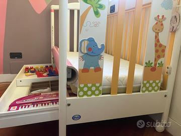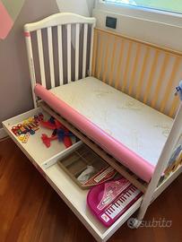 Lettino Pali modello Jungla con cassetto, buone condizioni, incluso il materasso. Si fornisce smontato. Le foto recentissime si riferiscono al lettino senza una della 2 sponde per permettere alla bimba di scendere da sola. Per evitare le cadute abbiamo utilizzato un tubo di cartone rivestito con carta adesiva rosa come si vede dalla foto. Misure 133x73 prezzo trattabile