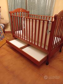 Lettino neonato in ottime condizioni, compreso di 2 materassi, paracolpi con federe,cassetto scorrevole portatutto