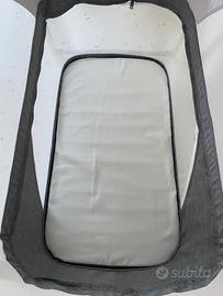 Lettino da viaggio campeggio usato pochissimo, in perfette condizoni. SOFI è un lettino per neonato e un lettino da viaggio, inoltre, è una culla e un box, due in uno. È leggero e si chiude in poche mosse. Grazie alla borsa e al materassino inclusi nel kit, puoi portarlo facilmente in viaggio. SOFI accompagna la crescita del bambino - quando il bimbo sarà troppo grande per un classico lettino, basterà abbassare il fondo e trasformarlo in un pratico box. L'ingresso laterale aggiuntivo consente al bambino di entrare e uscire da solo. Regolando il materassino sul livello più alto, si crea un pratico vano in cui riporre gli accessori e i giocattoli. Il materassino è incluso nel kit.