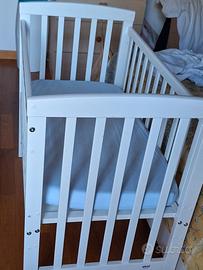 Lettino in legno bianco della Picci usato pochissimo. Materasso come nuovo. Si può usare sia come next to me che come lettino chiuso