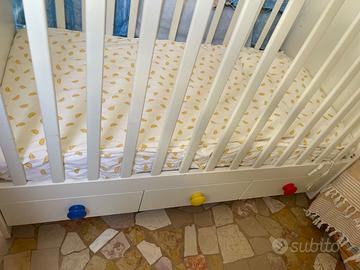 Lettino nuovo con tre cassetti ,usato solo qualche volte x giocare ,mio figlio non ci ha mai dormito !completo di doga ,materasso,cuscino ,comprato da Ikea .