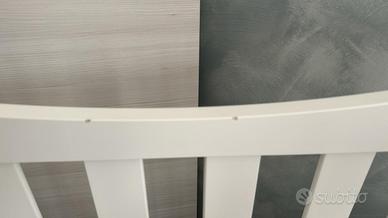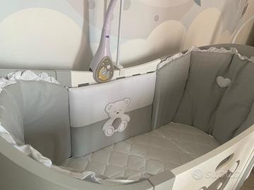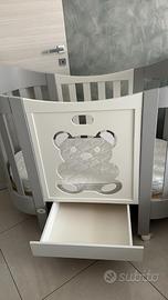 Buongiorno, vendo lettino ovale marca Cuoricini modello Olly completo di tutto, come in foto (corredo tessile, velo, paracolpi, giostrina, etc etc). Dotata di cassetto a scomparsa. Come nuova, tranne che per alcuni segni come in foto. Acquistata per 1.100€. Affare. Già montata.