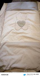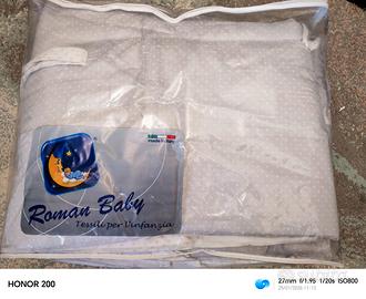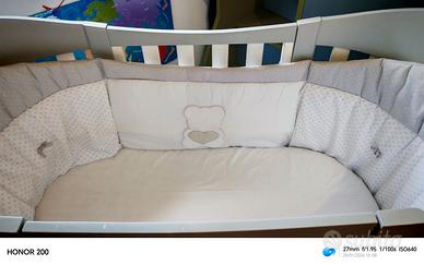 La confezione contiene il materasso ovale comfort cm 62x126, il completo con piumono sfilabile maxi e copripiumino e paracolpi