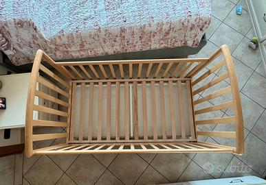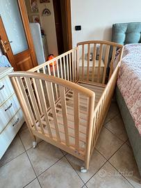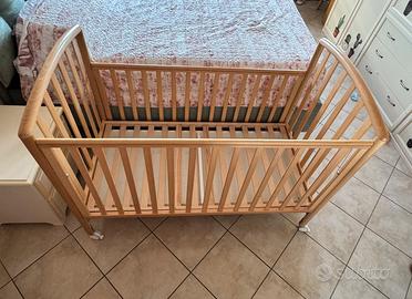 Lettino Pali Baby Ciak in legno di faggio con cassetto e ruote – Ottime condizioni Vendo lettino per neonato/bambino marca Pali, modello Baby Ciak, in legno di faggio naturale, robusto, elegante e Made in Italy. Il lettino è dotato di: • sponde laterali abbassabili • rete regolabile su più altezze • 4 ruote piroettanti, di cui 2 con freno • comodo cassetto inferiore portaoggetti • struttura solida e stabile Misure esterne circa: 132 x 72 x 100 cm Misura materasso interna standard: circa 124/126 x 64 cm Usato ma tenuto molto bene, presenta solo normali piccoli segni d’uso. Perfetto per cameretta neonato e primi anni. Ritiro a mano