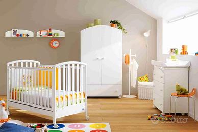 Inoltre, armadio due ante con cassetto lungo centrale sempre bianco e il fasciatoio classico con tre cassetti. Sempre bianco con il tema dell'orsetto come si vede nelle foto.
