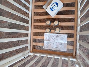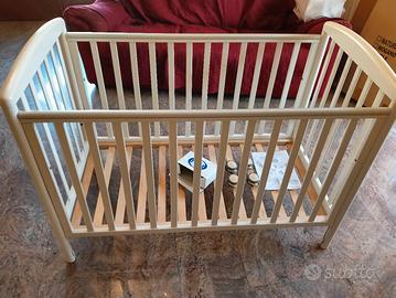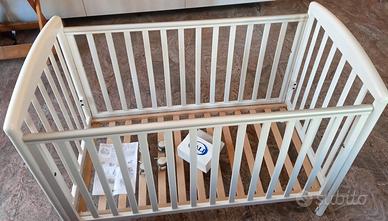 Lettino bianco marca Pali Top misura 120 x 60 cm. dotato di ruote ancora nuove con possibiltà di bloccare il lettino. Montaggio semplice con incluso foglietto istruzioni.