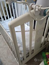 Lettino pali in perfette condizioni con materasso, 2 completi lenzuola, piumino e copripiumino in coordinato.