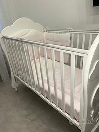 Lettino con cassetto, tutto in legno di faggio, La vendiamo 299 € compresa di paracolpi e piumone sfoderabile. Il prezzo non è trattabile. Dimensioni: 133 × 72 × 105 h cm