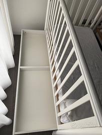 Lettino Pali bianco modello Ciak con sponde mobili e cassetto, completo di materasso