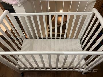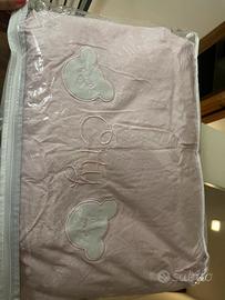 Comprensivo di materasso antibatterico coprimaterasso impermeabile e set letto coordinato composto da piumotto e paracolpi.