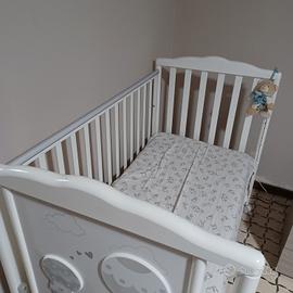 Lettino PALI con cassetto inferiore, sponde con protezione che si abbassano, 2 altezze del materasso (compreso nel prezzo). Piccoli segni di usura come da foto che si possono ridipingere. usato pochissimo.