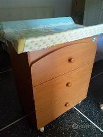 Lettino Pali con cassetto sottostante + materassino + protezioni laterali bimbo + fasciatoio