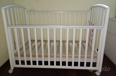 Lettino Pali bianco con cassetto portaoggetti, sbarra removibile e regolabile. Compreso nella vendita materasso marca Simam.