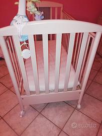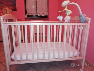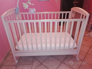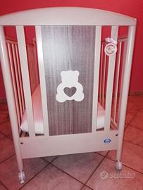 Lettino Pali in legno con cassetto contenitore, compreso materasso, paracolpi, piumone invernale, giostrina con apette funzionante e fasciatoio Brevi. Per ulteriori informazioni (disponibile altro materiale) chiamare dopo le 19. Vendo anche separatamente (fasciatoio 10 €). Non spedisco, solo ritiro sul posto.