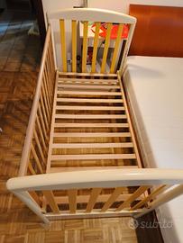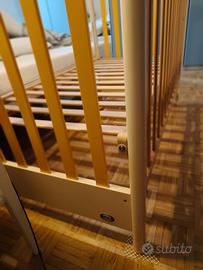 Lettino completo da neonato in ottime condizioni, regolabile in altezza. È dotato di base dondolo accessori. Nella foto è stata tolta momentaneamente la sponda.