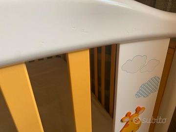 Completo di materasso, paracolpi, copri piumino e set lenzuola. Tutto in coordinato.