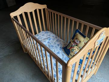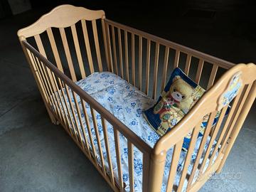 Vendo lettino Pali in legno chiaro, completo di materasso e ruote piroettanti con sistema di blocco.