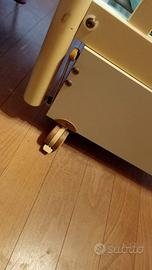 Vendo per inutilizzo, lettino Pali in legno rovere in ottimo stato con cassetto portaoggetti, sponda mobile, ai piedi ruote per agevolare spostamento. Completo di materasso sfoderabile e trapunta coordinata. In regalo spine carillon.
