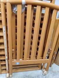 Vendo due lettini marca PALI modello CITY in ottime condizioni completi di materasso. Il lettino ha misure più contenute rispetto ai classici lettini, è quindi particolarmente adatto a case piccole, roulotte, case vacanze o campeggio. Anche il materasso è su misura per questo modello. Adatto anche per gemellini/fratellini da affiancare uno all' altro. Vendo anche singolarmente. Disponibile in due colori:uno color ciliegio e l'altro colore naturale. I lettini sono già smontato, solo ritiro a mano, no spedizione.Il lettino City misura (L x P x H): 109 x 57 x 96 cm.