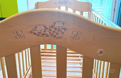 Vendo lettino Pali, modello Melody, in rovere chiaro sbiancato con Carillion incorporato nella struttura del letto; Spondine 2 posizioni con montante rivestito in gomma antimorso. Rete a doghe a due posizioni per seguire la crescita del bimbo/a da 0 a 5 anni. Comodo cassetto porta vestiti estraibile. Lettino provvisto di 4 ruote di cui 2 con freno. Nel prezzo è incluso anche il materasso anallergico ed antiacaro (con custodia). Lettino e materasso sono in condizioni perfette. Vendo il tutto a 40 euro per immediato realizzo.