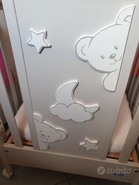 Lettino Pali orsetti praticamente nuovo con casseto sottostante - regalo materasso acquistato a parte di qualità superiore e costruito per appositamente per bambini.