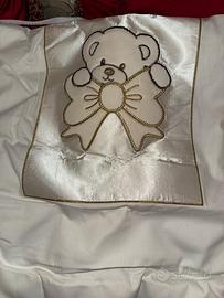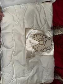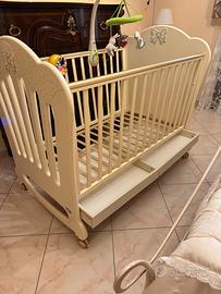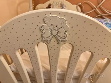 Vendo lettino Pali Prestige principe color panna con swaroski, usato pochissimo, compreso di materasso antiacaro sfoderabile, piumone e copri piumone, federa cuscino coordinata, paracolpi coordinato in regalo. Possiede delle ruote proiettanti dotate di freno di bloccaggio, la sponda si abbassa con una sola mano, struttura in faggio massiccio, rete ortopedica a doge in legno, cassettone sotto lettino in regalo lievemente lineato. Posso vendere i pezzi anche singolarmente: Lettino 150€ con cassettone sotto lettino in regalo Materasso antiacaro sfoderabile 40€ Set tessile piumone, copri piumone, federa coordinata con paracolpi in regalo 60€ Prezzo nuovo più di 600€ Ritiro del lettino direttamente a casa mia Partinico (PA) Piumone e set tessile posso consegnarlo a Partinico o a Palermo