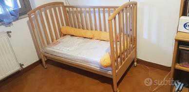Con il lettino vendo insieme il materasso ortopedico e antiacaro e un cuscino di protezione arancione di cm 200 utile per proteggere dagli urti il bambino (come da foto).