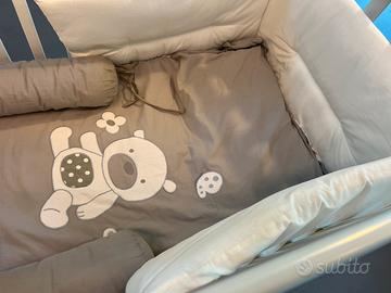 Lettino pali con ruote e sponda regolabile in altezza regalo paracolpi federe cuscino e riduttori o (quello grigio in foto per farlo diventare praticamente una culla così da evitare utilizzo next to me