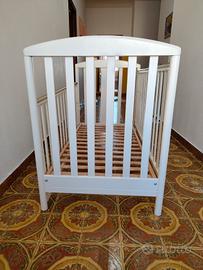 Lettino rigorosamente a norma, la distanza e la forma delle stecche delle sponde sono fondamentali per la sicurezza del bimbo, che a pochi mesi incomincia a muoversi nel lettino.
