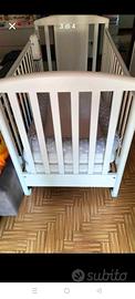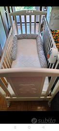 lettino Pali con cassetti e decorazione con orsetto a rilievo e cuore in stoffa rosa.