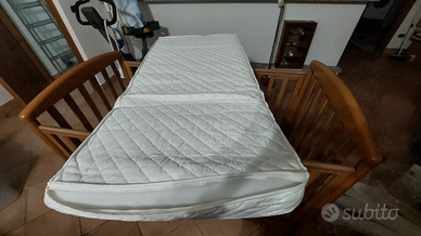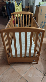 Vendo lettino tinta ciliegio, doppia regolazione altezza, cassettone porta oggetti, materasso sfoderabile e con fodera in 100% cotone. Tutto in ottimo stato.