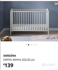 Lettino bianco in legno Ikea già smontato e pronto per il ritiro + materasso antisoffoco.