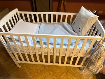 Vendo come NUOVO lettino in legno regolabile in due altezze con sponda regolabile ( eventuale si può rimuove ) vendo insieme materasso in memory e cuscino anti soffocamento. Sottolineo che il lettino è come nuovo in quanto non ci ha mai dormito il bambino.
