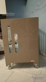 Lettino Micuna bianco e nocciola con sagoma dell'orsetto che dà un tocco di allegria all'ambiente. Struttura in legno massello di faggio, resistente e durevole nel tempo. Dotato di sponda laterale abbassabile, a norma di sicurezza. Ruote piroettanti e antitraccia, due con freno.