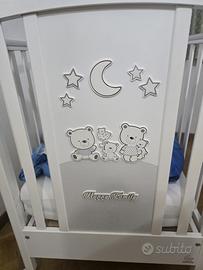 Lettino con sponde regolabili e cassettone porta oggetti