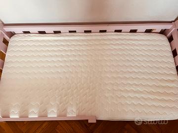 Lettino per bambini design tenda indiana con sponde protezione anticaduta - Rete a doghe 70x140 cm- legno di pino rosa- materasso sfoderabile in schiuma fredda- pari al nuovo, usato pochissimo. Legno leggermente sbeccato in un punto.