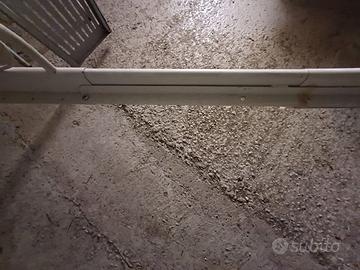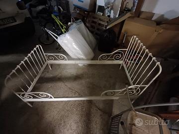 Lettino ikea in ferro laccato panna, allungabile 3 misure da piccolo a misure regolare, completo di doghe in legno, materasso in 3 parti, coprimaterasso per uniformare i tre pezzi quando usato per bambini più grandi. Adatto da 1 a 10 anni.