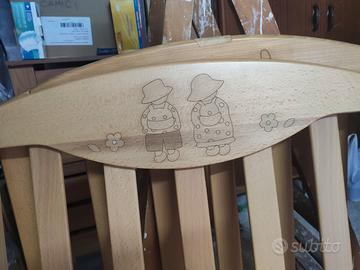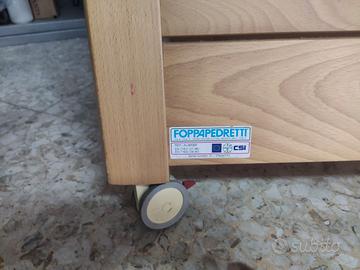 Lettino in legno ( colore noce come da foto) Foppapedretti modello Alibaba' materasso incluso ecassettiera. Ruote con blocco e apertura delle sbarre laterale. Usato come nuovo, perfettamente conservato. Leggermente trattabile. Consegna a mano.