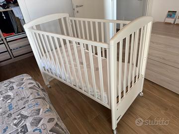 Il lettino, in ottime condizioni come si vede dalle foto, ha una sponda regolabile a due altezze che può anche essere abbassata a scomparsa per la versione a divanetto. Queste modalita rendono molto comodo sia riporre il bimbo sul materasso che la sistemazione del lettino.