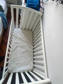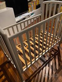 Lettino pali per spazi piccoli dimensioni 109x56x96,5 altezza compreso di materasso colore bainco