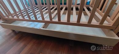 Lettino con cassetto, in legno di faggio massiccio.