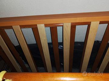 Materasso 120 X 60 altezza 15 cm con cuscino anti soffocamento e letto colore marrone con doghe