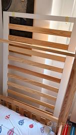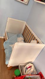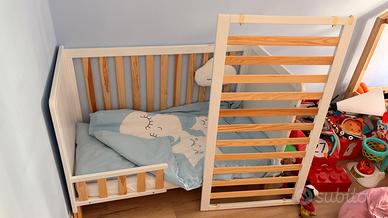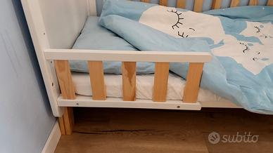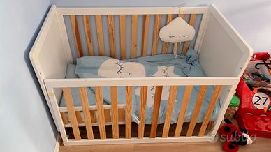Vendo lettino da bambino in legno massello, in condizioni come nuove — usato pochissimo. Ideale per neonati e bambini fino a 3 anni, con misure standard 120×60 cm (regalo materasso). Condizioni come nuovo di colore legno e bianco. La sponda laterale è amovibile, così da facilitare l'accesso al bambino. È inclusa anche la spondina laterale corta, utile per sicurezza aggiuntiva nelle fasi di transizione. Struttura solida, sicura e priva di difetti. Occasione.